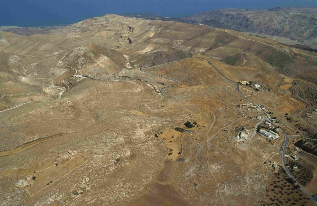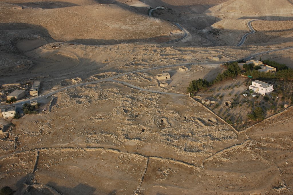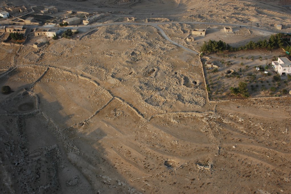 Machaerus, southeast face and the town nearby, aerial from SE APAAME_20060910_DLK-43