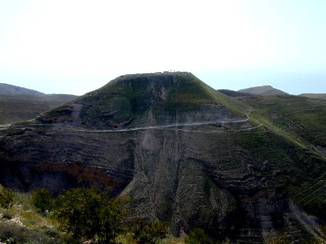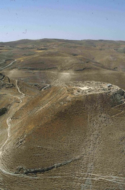 Machaerus, southwest face and summit with Herodian palace, aerial from SW APAAME_20060910_DLK-22