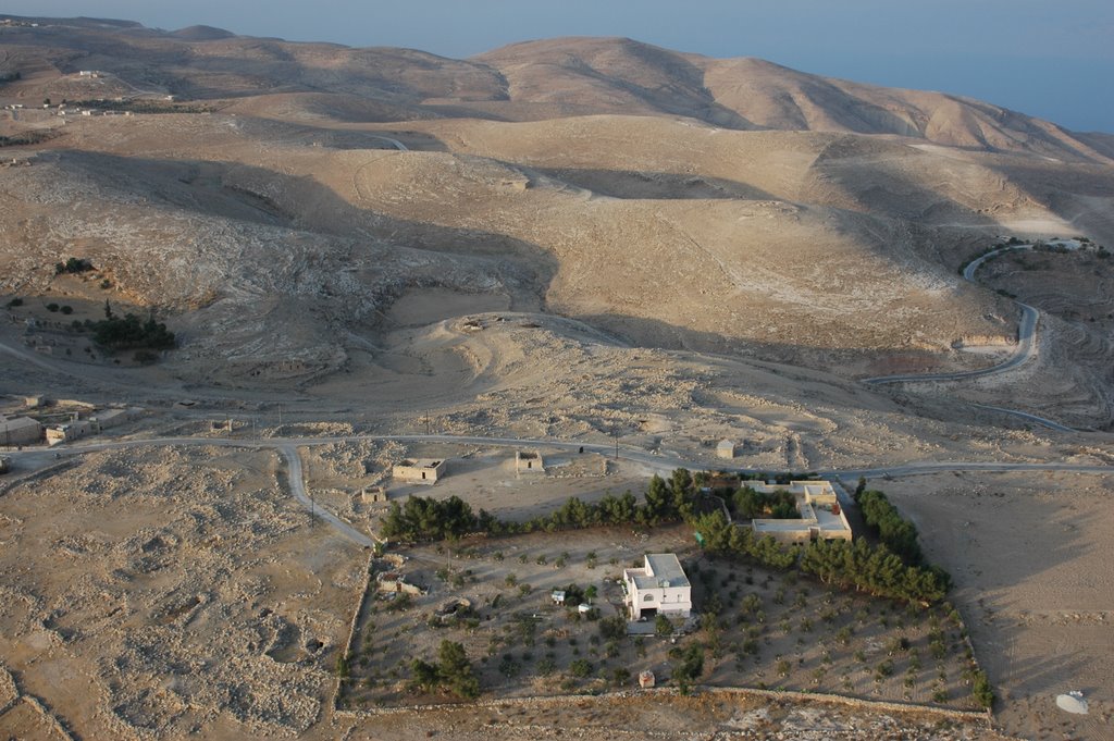 Machaerus, southeast face and the town nearby, aerial from SE APAAME_20060910_DLK-45