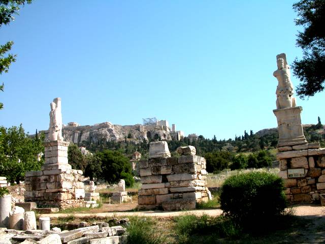 AthenaiAlternative names: Athenae, AthensPlace descriptionThe Acropolis of Athens had already been occupied in the Neolithic period. During the Late Bronze Age, the settlement in Athens centred on a heavily fortified citadel, but the importance of the acropolis should not be overemphasized. A palace might have been located there, even though there are no convincing traces. The surviving Bronze Age structure is a shaft leading from the Acropolis to a spring beneath it. By 750BC, the acropolis had become a sacred precinct for Athena. The Old Temple of Athena was built in the 6th century BC and it contained an olive-wood statue of Athena Polias in the east cella. The temple was destroyed during the Persian invasion in 480BC. After the Athenian victory, the old Parthenon was replaced by a new one under the leadership of Perikle. On the façade of the new temple stood the famous Elgin Marble, which is now in the British Museum. The Propylaia, the formal entrance of the sanctuary, was constructed from 437 to 432BC. During the Peloponnesian War, The temple of Athena Nike and the Erectheion were built. A sculptured frieze ran around the temple of Athena Nike, with its eastern side showing an assembly of gods and a series of battles of Athens. The Erectheion replaced the Old Temple of Athena nut was located in a new area. Female statues called Caryatids were used as columns. Both Alexander the Great and Attalos I or II of Pergamon made dedications in the Parthenon. But in 295BC the Athenian tyrant Lachares stripped the gold off the statue of Athena to his men. During the Roman period, the Temple of Roma and Augustus was constructed and the Parthenon was subsequently subjected to the Romans. Due to the Herulian attack in 267AD, the Beuel Gate was built in front of the Propylaia. A fire subsequently destroyed the statue, cella and the roof of the Parthenon. Although the temple was repaired, its replacement statue was destroyed by Christians in 485AD and the temple was converted to a church of Virgin Mary in the late 6th century AD. The hill west of the Acropolis stood the Areiopagos. The Pnyx there was an assembly of male Athenian citizens in the 5th and 4th century BC. Dated to 330BC with three times of rearrangement, the present Pynx had a semi-circular wall and a speaker’s platform. In front of the Pnyx, there were long foundations which might have been either stoas or spectators overlooking a race-cross. At the south of the Acropolis, the Theatre of Dionysos was built in the late 4th century BC to replace its 6th century BC predecessor. It was used for gladiatorial contests in the 1st century AD. The Odeion of Perikes at the east of the theatre was used for concerts and musical contests. Built in the 4th century BC, the temple and altar of Asklepios were introduced and funded by Telemachos from Epidauros. An Ionic stoa stood at the west of the sanctuary. At the west of the stoa, there was a spring chamber sacred to Pan and the Nymphs; and in front of the spring chamber, there were temples dedicated to Themis and Isis. The Odeion of Herodes Atticus was built by Herodes in memory of his wife. The Stoa of Eumenes was a donation from Eumenes II, the Hellenistic ruler of Pergamon in the 1st half of the second century BC, but it was destroyed in the 3rd century AD. The agora in Athens was the best preserved amongst its counterparts in Greece. As the civic heart of the city till the 1st century AD, its importance was further enhanced by the street of the Panathenaia, which was a processional way and a main road running across the agora. The vicinity of the agora was already settled during the Neolithic period. The area started being used for communal purposes in the early 6th century BC with the construction of its first public building. After the Persian War, the stoas and the temple of the Hepaiseion were built. The stoas in the agora included the South Stoa I, the Painted Stoa, the Royal Stoa and the Stoa of Zeus of Freedom. The Tholos, built at 470-460BC, was a dinning hall for the members of the Athenian council. From 300BC onwards, the agora was filled with statues and paintings. Temple structures in the agora included the Hephaisteion, the temple of Triptolemos, the Metroon and the Temple of Ares. During the Hellenistic period, new stoas including the Middle Stoa and the Stoa of Attalos were added to the agora. But since the Roman period, the agora only served as a museum and a cultural centre. The Romans also replaced the Hellenistic kings as the donors. The Odeion, which was also called the Agrippeion, was probably named after its Roman benefactor. The South-east Temple was built at the time of Augustus. The area was damaged by the Heruli in AD267. A new city wall subsequently incorporated ruined buildings and the east side of the agora. The Alaric caused more damages in AD396. The construction of the Palace of the Giants revived the centre of the agora. The large Omega House was also occupied from the 4th to 6th century AD, but it was abandoned after the Slavs’ arrival in AD582/3. The old agora was linked by the Roman agora. An inscription on the Roman agora gateway claimed that the gate was dedicated to ‘Athena the Originator’ and was funded from ‘the gifts given by Gaius Julius Caesar the god and Emperor Caesar Augustus, son of a god’. A 68 seater public latrine was built. The Tower of the Windshad, as a weather station, had a wind-driven clock inside. There were also sun-dials on each face and on top of a weather-vane in the form of a bronze Triton or sea-monster. At the south of the tower, there was a public building dedicated to Athena and the divine Roman emperors. A public fountain was located at a large square for shops and market halls. The Library of Pantainos was a privately funded institution. The Library of Hadrian was a huge complex with an ornamental pool in front of it. Another Hadrianic structure was built at the southeast of the library. Images![]() Athens acrop