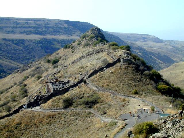 es SalamAlternative names: Gamala, Gamla, SalemPlace descriptionThe town, located in the Golan, was part of Josephus’s territory during the early stages of the Revolt of 66-74 CE; sometimes Josephus implies that it was in the Galilee. Built from local basalt on an isolated hill shaped like a camel hump (Arabic, jamal; from which the town gained its name), the town was fortified naturally, although prior to the Roman siege a wall was added on the northeast. Josephus gives an extended description of the town and the siege (War 4.4-83). Excavations began a short time after the site was first identified during the survey of the Golan, and continued for fifteen seasons. The archaeological finds over the many seasons show a high correlation with the geographical description and battle story as described by Josephus. After the town was conquered and destroyed by the Roman army, it was never rebuilt (see Gutman in NEAEHL 2: 459-63). <br>The site covers more than 100 dunams (10 hectares; 25 acres) on the steep southeast slope; it was first inhabited in the Hellenistic period (though there was also a small walled city in the Early Bronze Age). The excavations have revealed several residential areas, one of which had rich houses with frescoes and stuccoed walls, two olive presses (with an attached mikveh), flower mills, and a synagogue. Many of the buildings were roofed with basalt slabs. The added defensive wall on the northeast was built quickly; it cut through some houses, blocked gaps between other houses, and filled in the eastern room of the synagogue. A round tower strengthened the point where the wall met the ridge. <br>The synagogue, one of the earliest to have been excavated (first century CE), is of fundamental importance for consideration of pre-70 CE synagogues. The Gamla building is a modest multi-purpose space, with attached Beth ha-Midrash and nearby mikveh. The interior has columns on four sides and heart-shaped columns at the corners, with variously designed capitals, founded on stylobates on a beaten earth floor; there are three benches around the perimeter on three sides, and five benches at the front. A small cupboard may have held the torah scrolls (Richardson 1996b). More recently, a second large building has been located on the west edge of town, with three parallel and interconnected square rooms, each opening through a wide opening onto other spaces. Its purpose is not known; it may be either a second public building or possibly a large, rich, private dwelling. Coins. The latest coins, found in the destruction layer of the site, were minted at Acco in the reign of Nero. Five specimens of a previously unknown type of bronze coin also were found, carrying the inscription “For the freedom of Jerusalem.” It appears that the revolt coins minted at Jerusalem from 67 CE were not distributed in the Galilee at the beginning of the war. After the Galileans became aware of this type of “revolt” coins with their slogans, however, they minted their own at Gamla a short time before the Roman siege (Syon 1992-93). An important coin hoard of silver Tyrian shekels was found just outside the door of the large olive press.<br>Military finds. Substantial evidence for a lengthy siege and a heavy battle was found all over the site. A few thousand arrowheads and catapult bolts, together with hundreds of ballista stones, were found, mainly along the firing line, on both sides of the newly built wall. Various elements of Roman army equipment such as swords, armor, and helmets were found.<br>Other small finds. Carved gemstones, sealing rings, cosmetic implements, needles and other jewelry were also found, as well as several lead medallions. The great majority of the pottery and the glass vessels were Early Roman. Images![]() Gamala_Salem.C.M.F ![]() Gamala ![]() Gamla synagogue from above, tb ![]() Jersalem orig S steps temple SM ![]() Gamla canyon, tb ![]() Gamla mikveh, tb ![]() Gamla wall breach by Romans, tb ![]() Gamla Jewish Revolt coins, tb ![]() Gamla from east, tb ![]() Gamla catapult balls in Qatzrin Museum, tb Videossalem_es.gv |
